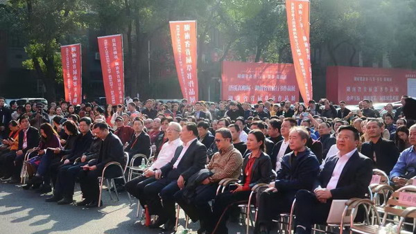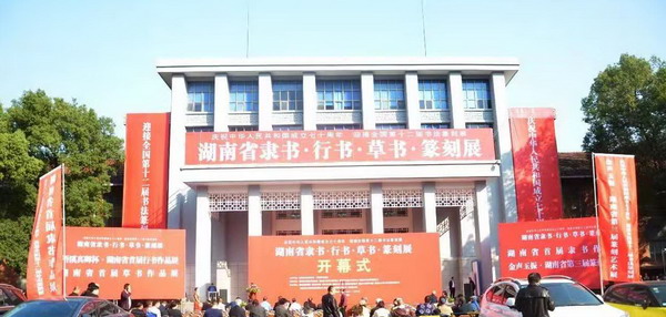 11月22日,由湖南省书法家协会、湖南省书法院共同主办,湖南省书协隶书委员会、湖南省书协行书委员会、湖南省书协草书委员会、湖南省书协篆刻委员会分别承办的“庆祝中华人民共和国成立70周年、迎接全国第十二届书法篆刻展”湖南省隶书、行书、草书、篆刻展在湖南省展览馆开幕。篆刻委员会在开幕式后还召开了“湖南篆刻艺术研讨会”。展览将持续到12月1日,免费对公众开放。