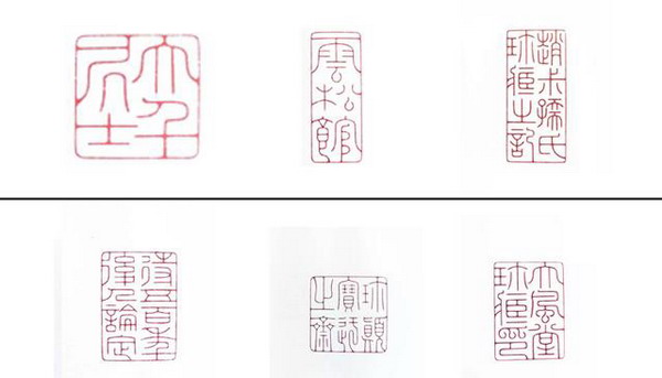 综上所述,细朱文印包括元(圆)朱文印,通俗讲自明清以来各家各类风格的工细阳文章都可以称之为细朱文印,但绝不可都称元(圆)朱文印。细朱文印的产生,历来存在诸多说法,较有影响的有两种:一种为始于元代赵孟頫说,这种观点在清代高积厚所著《印述》、陈鍊所著《印说》中都可以找到。而另一种为始于六朝说,清代著名的书法篆刻大家赵之谦在他所刻圆朱文印“镜山”款中说:“六朝人朱文本如是,近世但指为吾、赵耳。越中自童借庵、家芃若后,知古者益鲜,此种已成绝响,日貌为曼生、次闲,沾沾自喜,真乃不知有汉,何论魏、晋矣…”。这两种观点提出的似乎仅是小篆细朱文印的定型期,并未明确提出小篆细朱文印并未明确提出小篆细朱文印的产生。