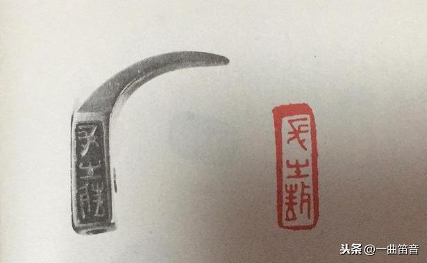 铜玺纽式之一,印长方, 侧面有穿可系组,印的端锐角弯出,整个印体量牛角状。触是古代解结的佩饰,多角质,《说文》“觹,佩角,锐端可以解结,从角出声,诗日,童子佩觹。”觹纽见于战国,觹印,既作实用之觹角,又为信物,一物两用。
