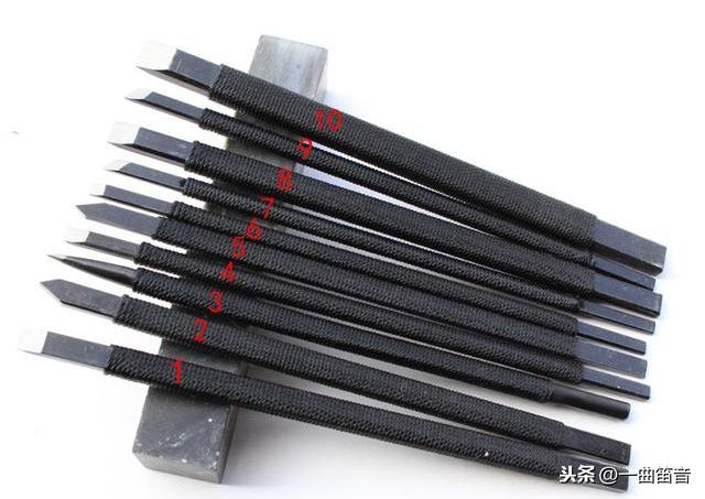 平口刀,最常用,刀口宽度有1至14毫米不同型号,初学者用刀多备无患,一般情况是大刀用于印面粗犷的地方,小刀表现细节。用的最多的刀口宽度为3、4、6、8、10毫米的刻刀,3、4、6、8毫米刻刀用于印面,8、10毫米刻刀用于边款或印边破残。