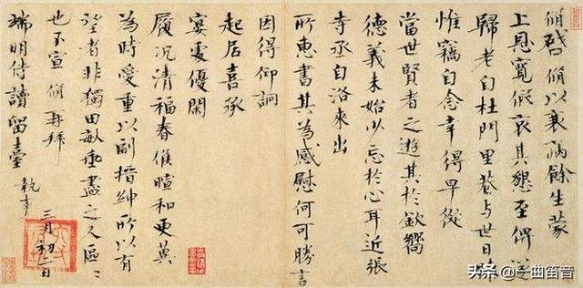 第三四行中间的空白是米芾有意留的,收藏家揣摩准作者立意,便把印挤在了右侧,使密者更密,符合疏密对比的作者原意。
