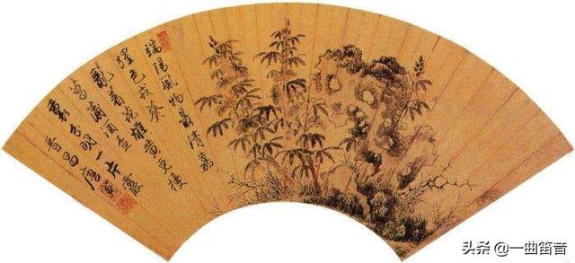 用印内容及大小需要与作品匹配和谐,一幅作品里用印的大小尺寸需统一。如果两印并用,常见落款小印在上,大印在下,此为俗人之见。古人又曰:“用图章,宁小勿大,大则不雅。”小楷、小品、落款小字及留白位置较少的作品适宜用小印,如图扇面,用一枚联朱小印,如画龙点睛,自见精巧。