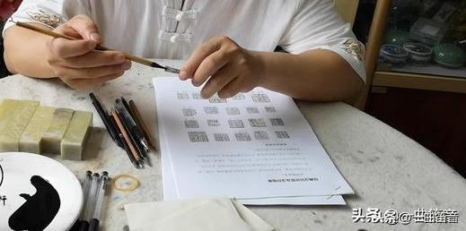 1,准备要临摹的印稿几个,铅笔、小楷笔、碳素签字笔各一支,10乘10公分左右的表面均匀洁净的连史纸几张,10乘10公分左右的生宣纸几张,砚台或小碟子一个,正宗一得阁墨汁少许,印石一枚,橡皮筋一根,清水少许。