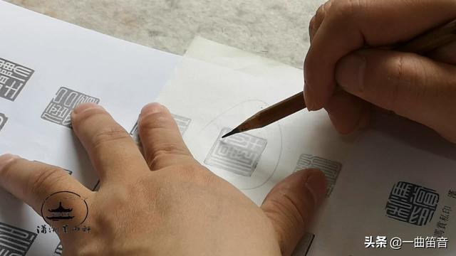 2,将连史纸覆盖在要临摹的印稿上,用铅笔将需要临摹的印稿四边勾勒出来(这一步是防止纸张挪动后,还能套回原样),然后将印稿的印文双钩出来.